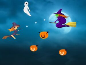 Tap the game screen to make the witch fly. Collect stars, but avoid the flying pumpkins, ghosts, and the purple witch. After you collect a star the witch is encased in shield for 8 seconds during which time she cannot be damaged. The witch autoshoots so you can aim to… Read more: Witch Flight 2 - Halloween Match Cards Game